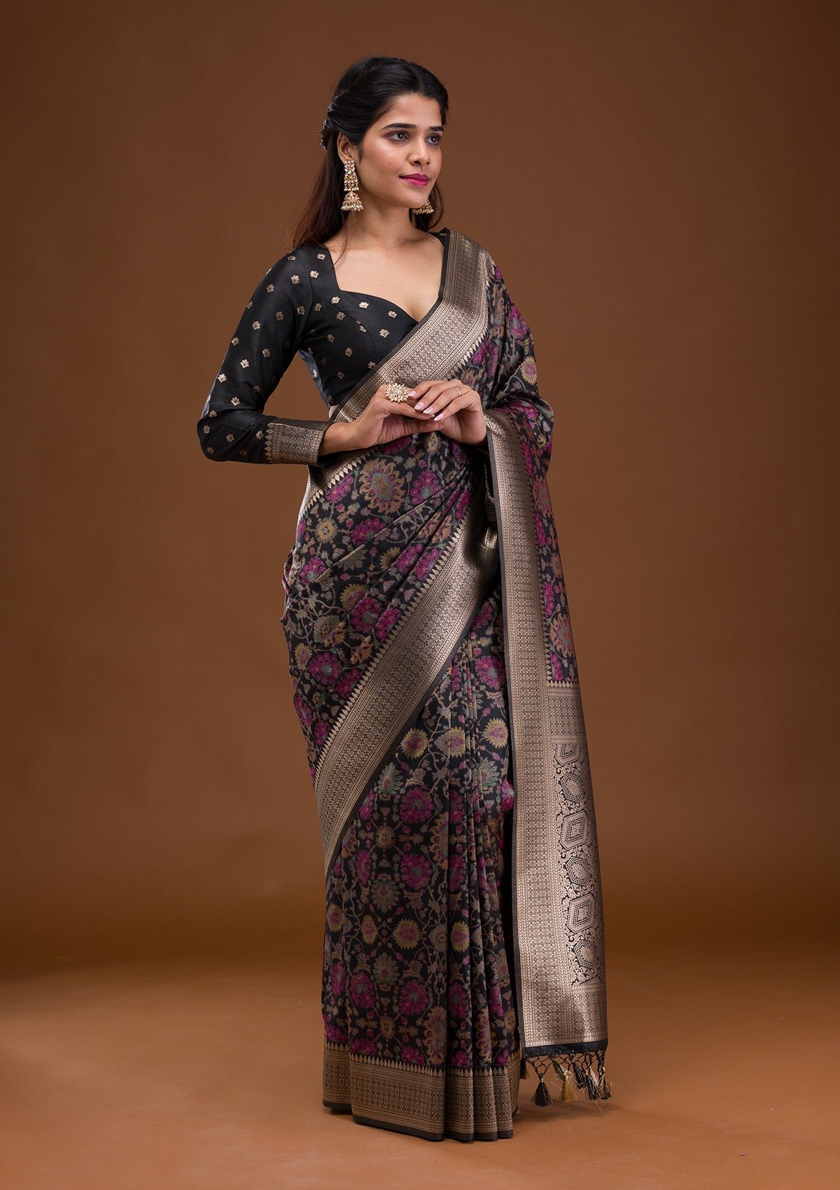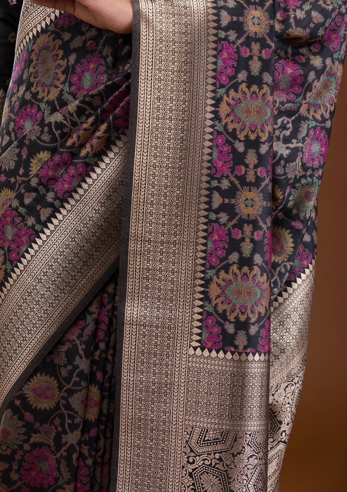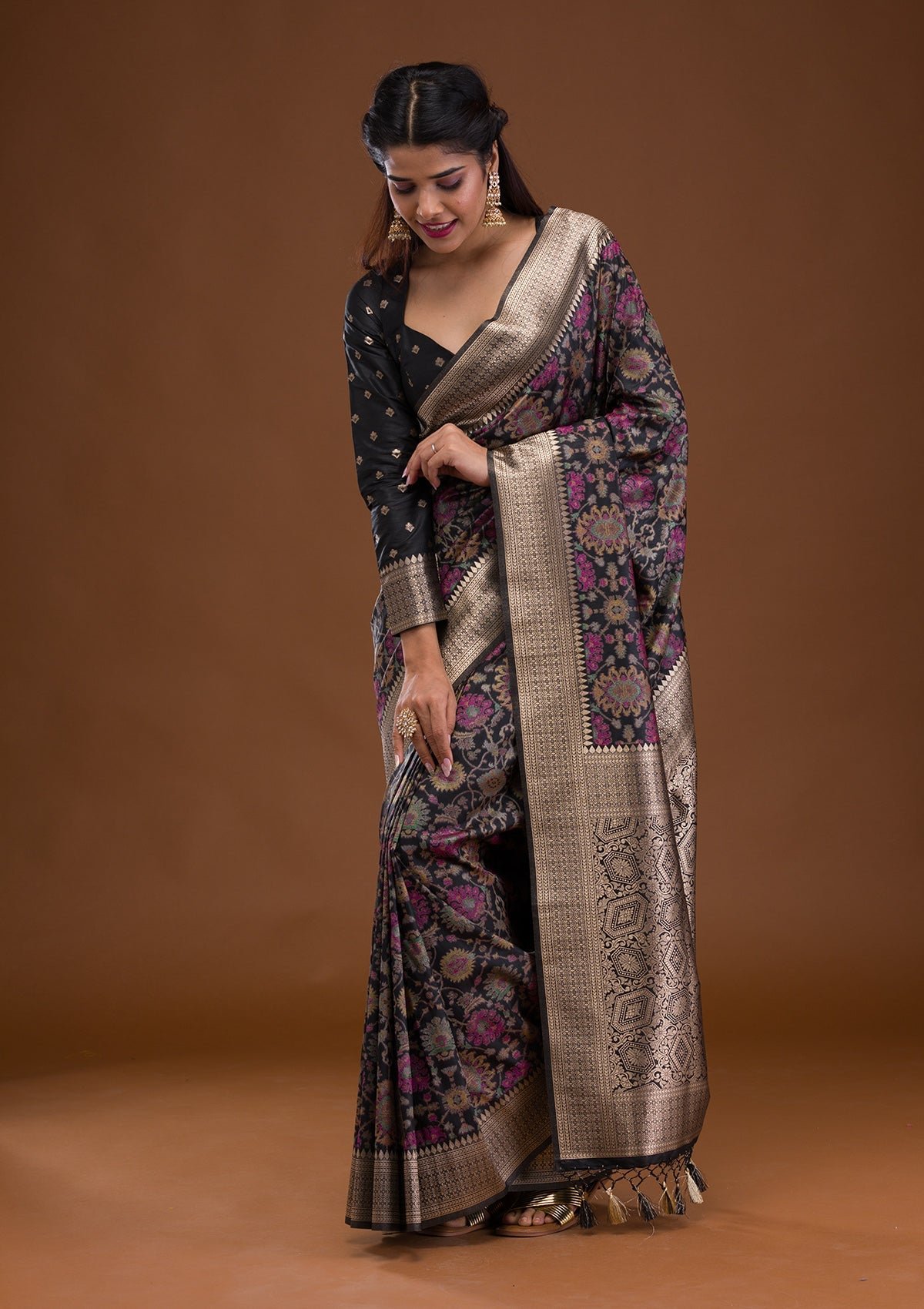 – Black Saree in Banarasi Silk fabric