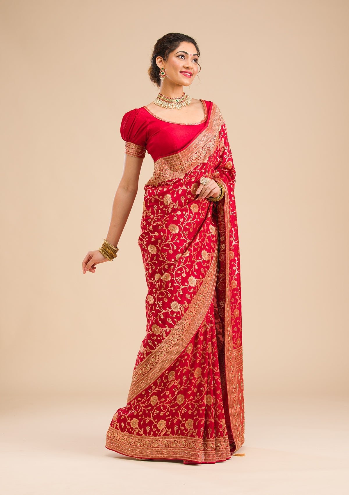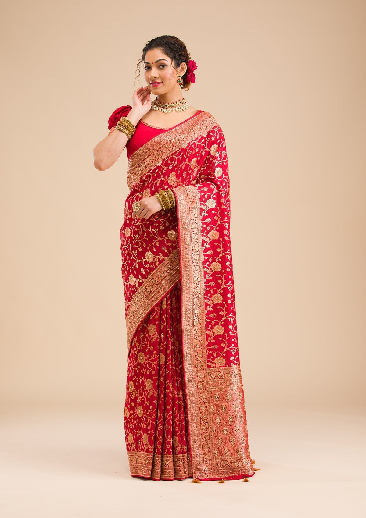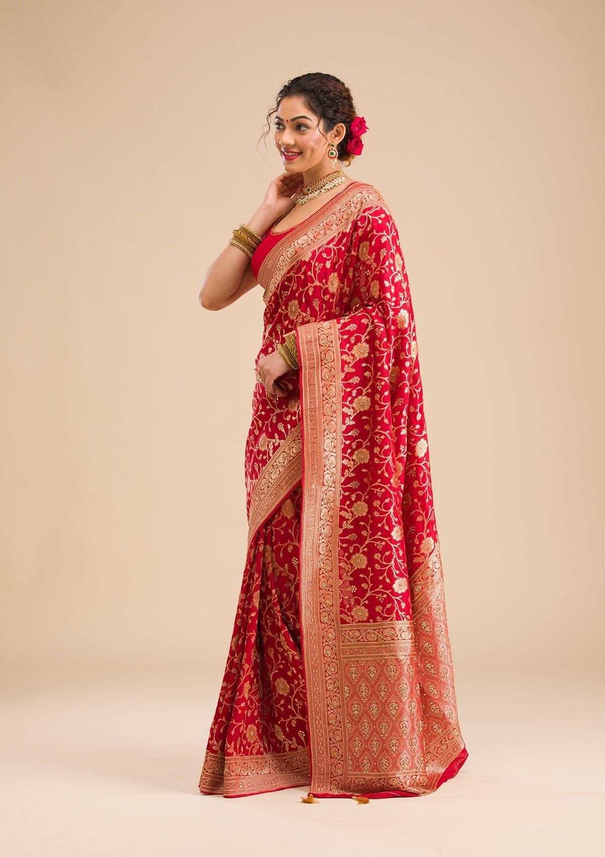 – Red Saree in Banarasi Silk fabric