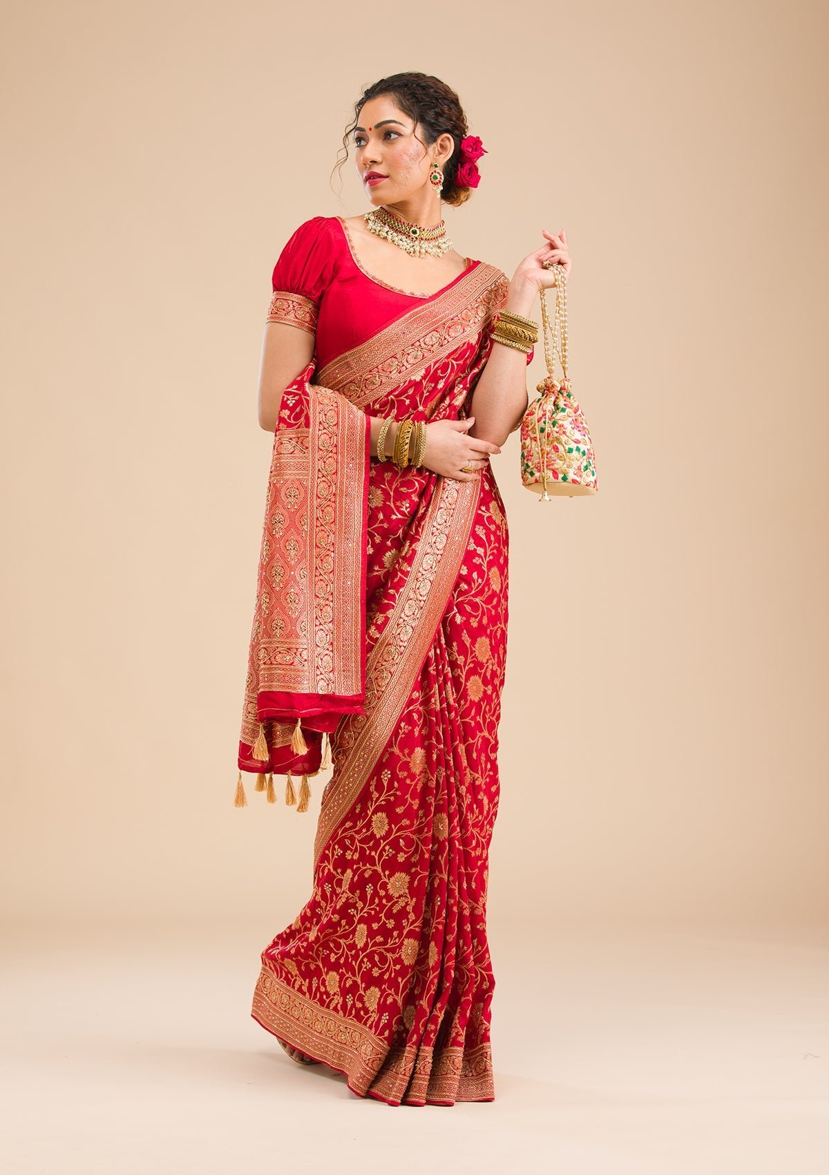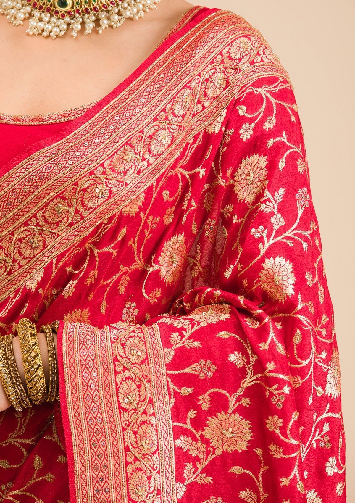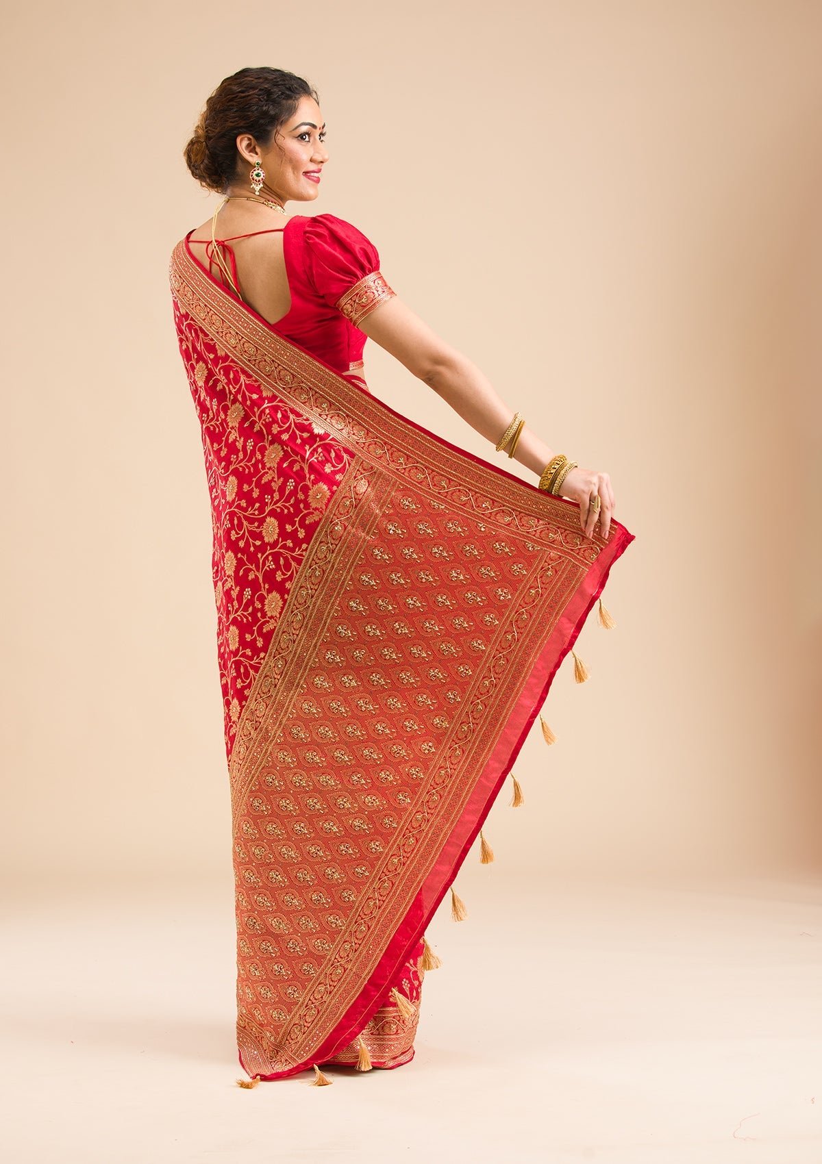 – Red Saree in Banarasi Silk fabric