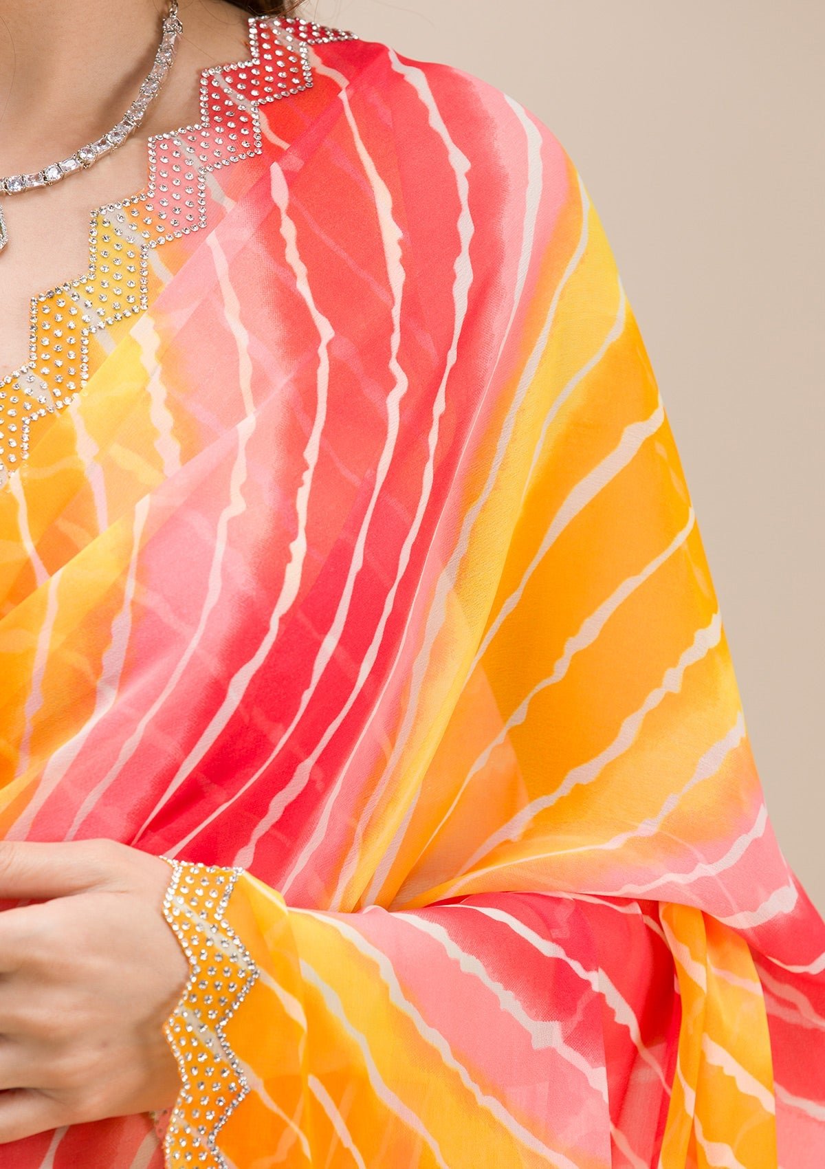 You have 1 item in your cartRadiant Yellow Georgette Saree with Stunning Stonework