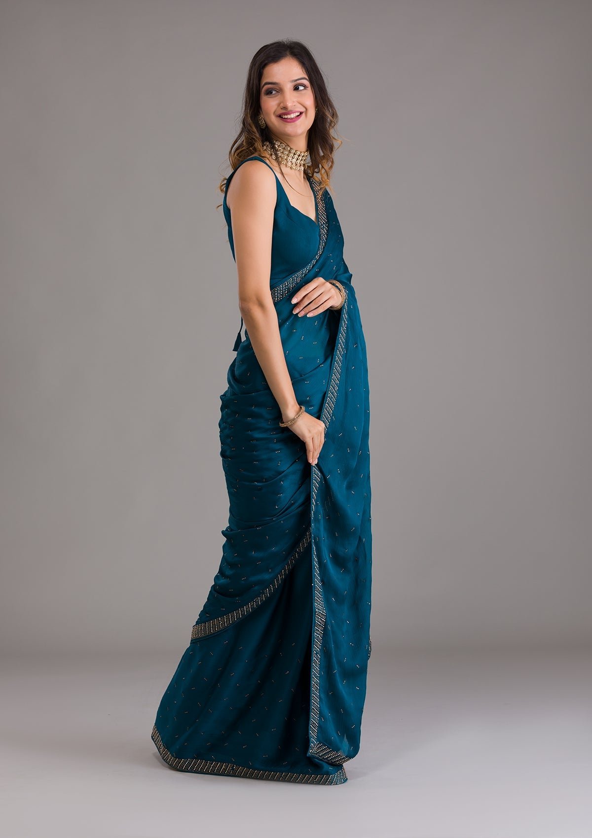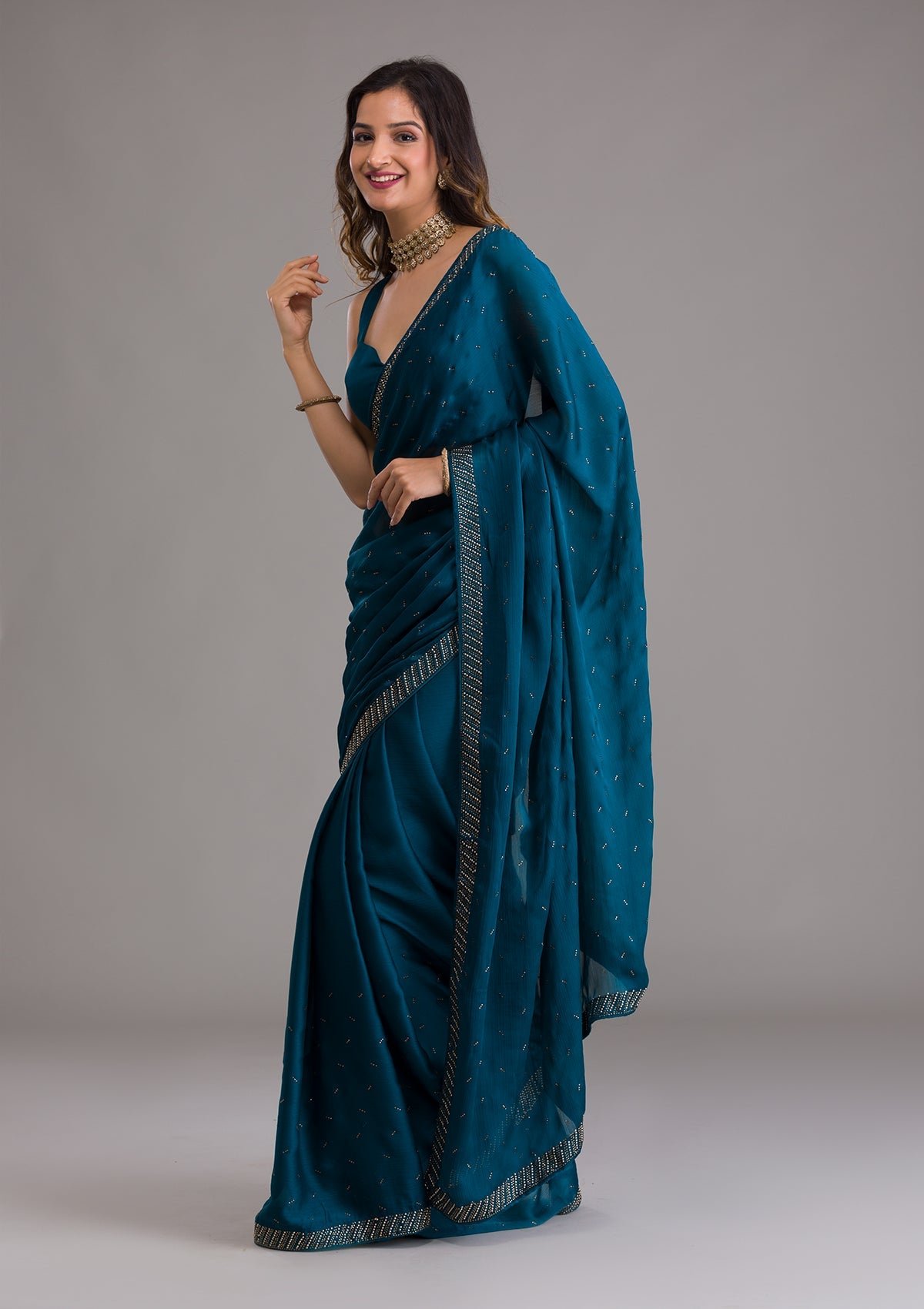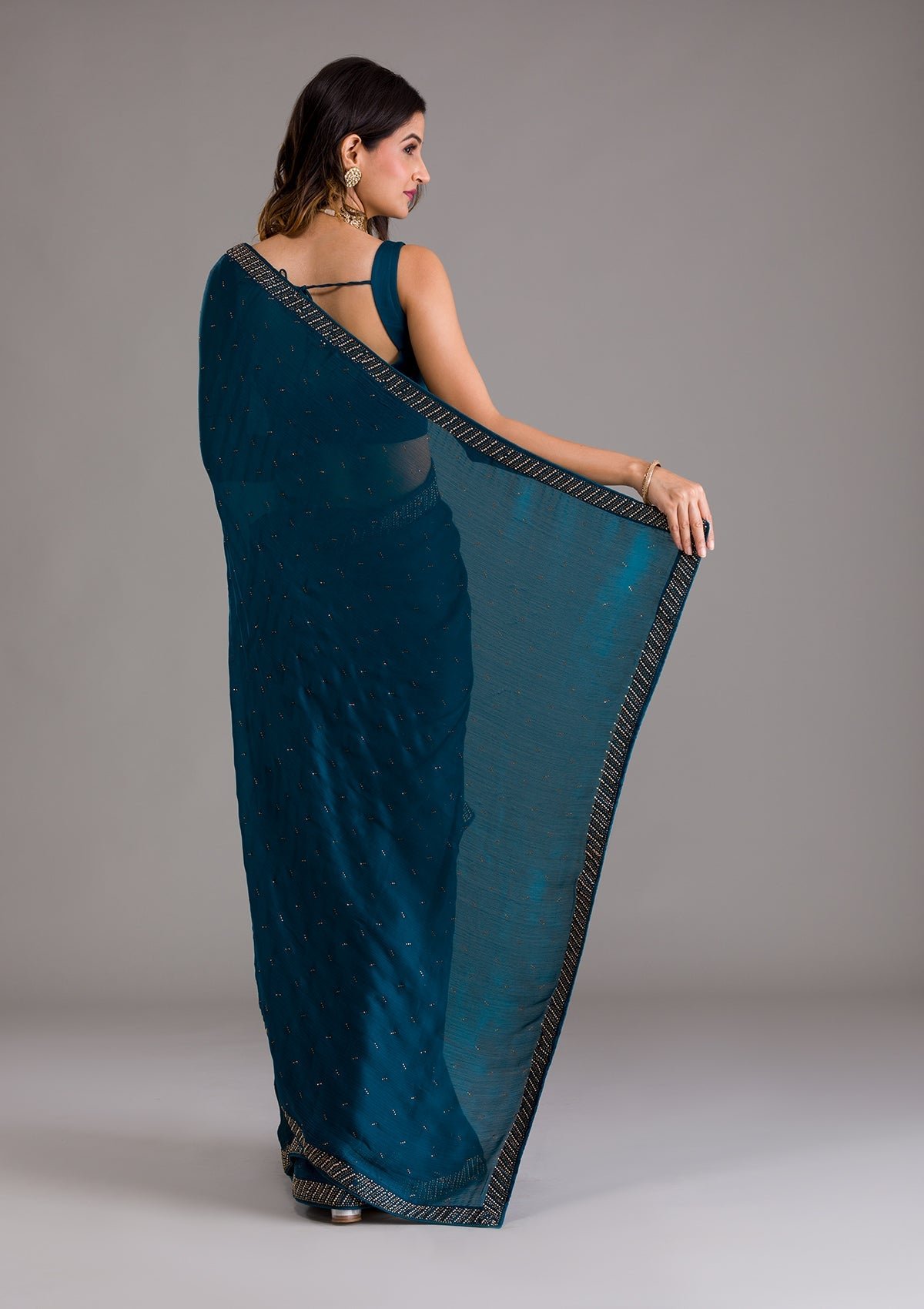– Peacock Blue Saree in Semi Crepe fabric