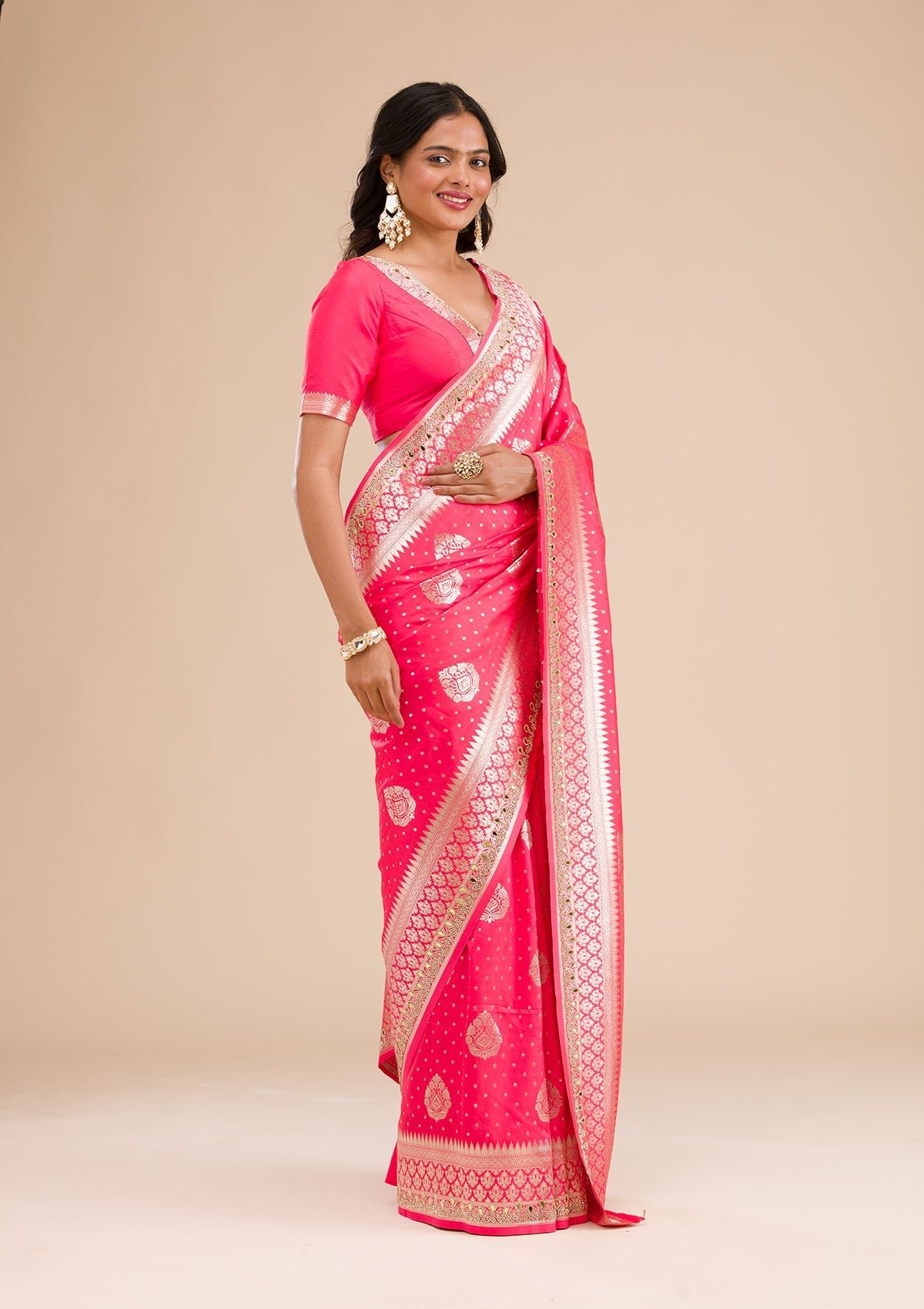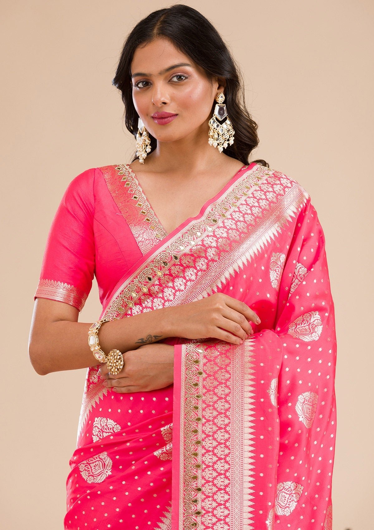 Stunning Pink Banarasi Silk Saree with Exquisite Zari Work
